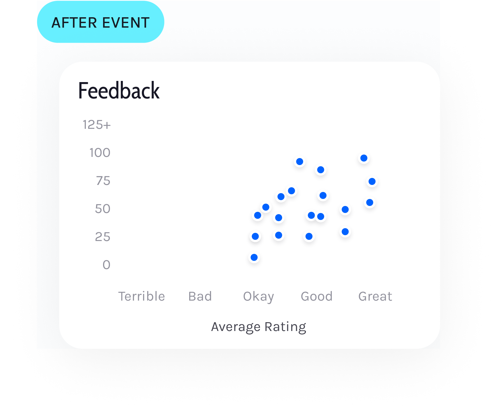 Built-in analytics & feedback so organizers understand impact, attendee satisfaction, and ROI