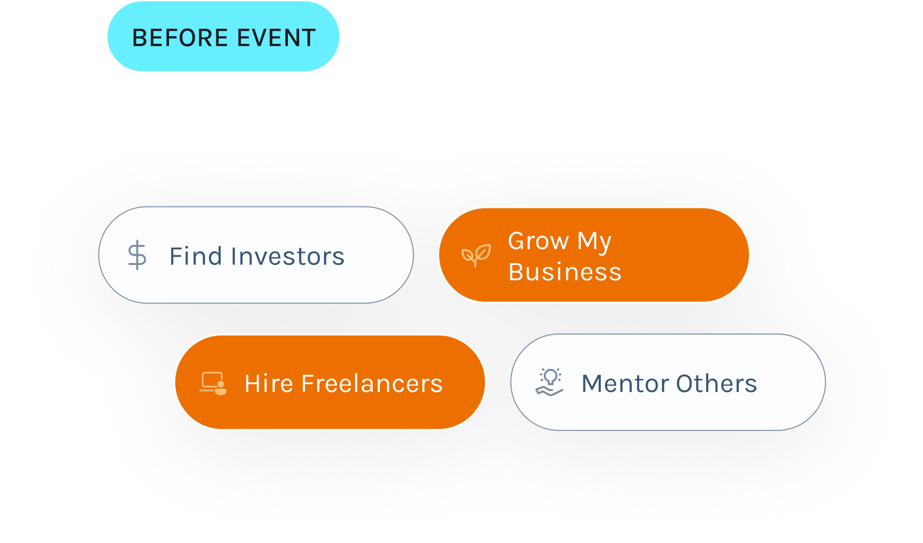 Pre-event goal setting allows our AI-driven matchmaking possible so that you can meet relevant people
